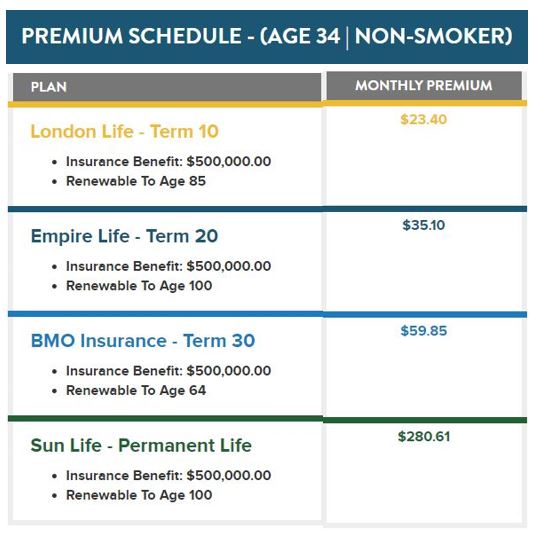 Check out this chart to see the difference in premiums going from Term 10-Term 30, compared with the lowest premium option for Permanent Insurance: